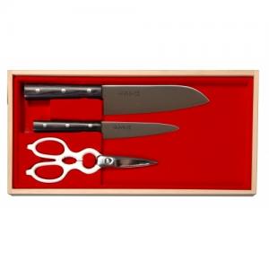 Набор из 2х ножей (Сантоку и Универсальный) и ножниц в подарочной коробке Masahiro 11534W